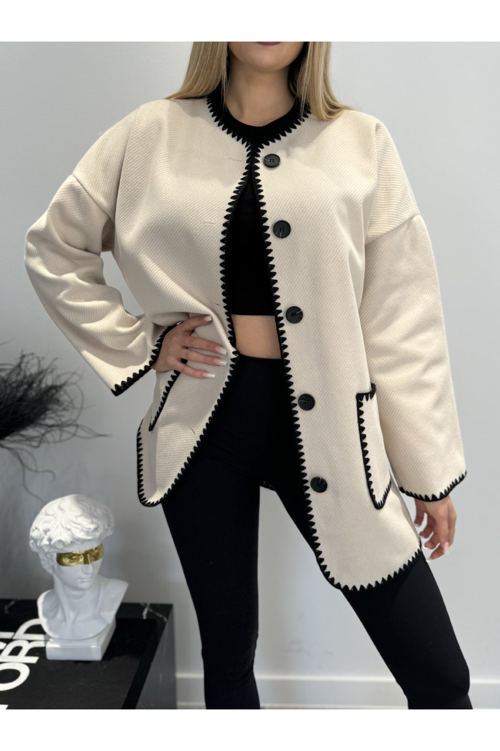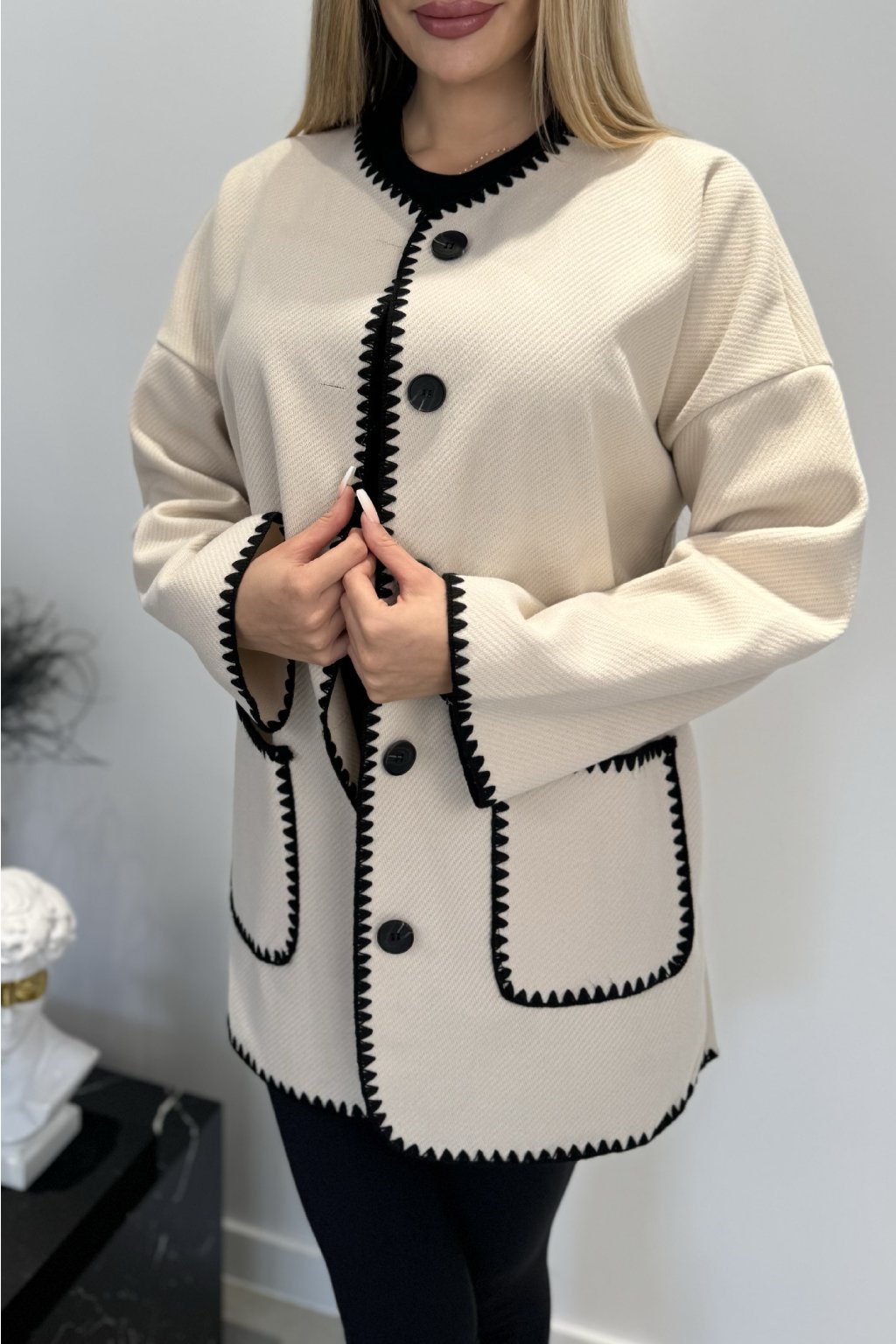 Hrubší svetro kabátik béžovej farby na gombičky.Môžete nosiť ako sveter alebo tenší kabátik.